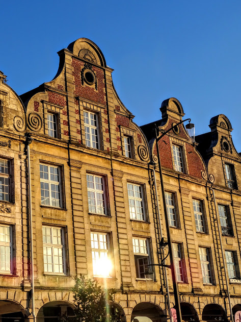 De la place des héros, nos pieds se dirigent vers la grand’place, sa belle voisine. Encore une myriade de façades dont la plus ancienne maison d’Arras datant de 1467 (ah ! tout de même) rougeoyante avec sa façade de briques.