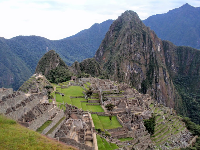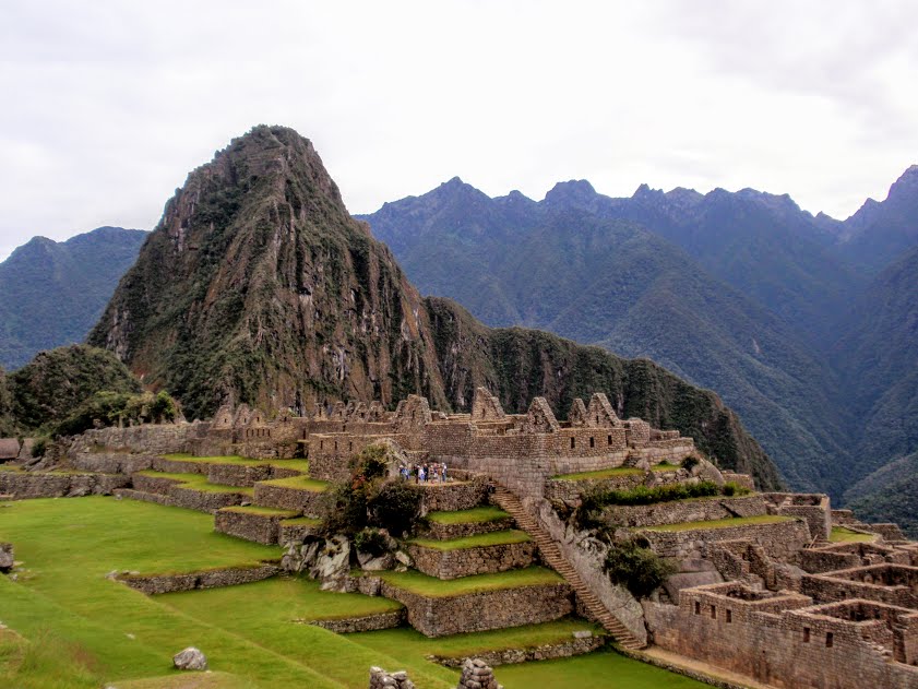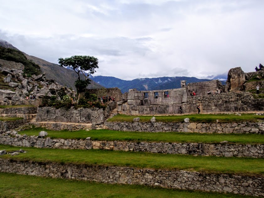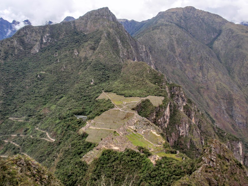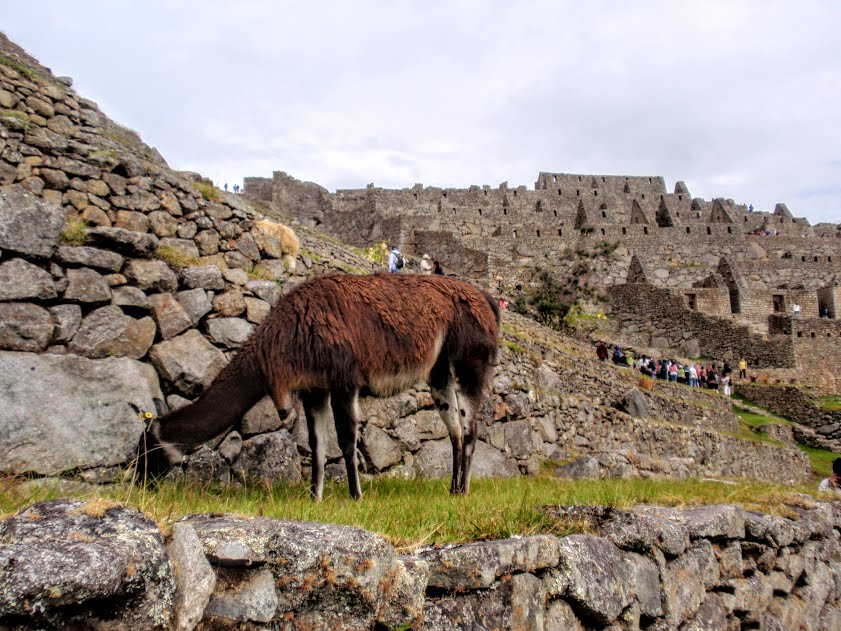 Après avoir sué intensément, nous arrivons au lever du soleil au sommet, la récompense est belle !! Il n’y a pas trop de monde à cette heure-là, enfin nous voyons cette montagne et ce village connu de tous, les ruines sont splendides, et la force de ce lieu est complètement indescriptible !! Le village est perché en altitude, des montagnes et des rivières nous entourent, les pentes sont quasi-verticales, on a l’impression d’être minuscules ! Des lamas arpentent les petites rues, et nous voilà en train de plonger dans la vie quotidienne inca ! On se croirait dans un film fantastique tant il est difficile d’imaginer la vie ici dans ce lieu magique, les maisons de pierre entourées de montagnes pointant vers le ciel, surplombant une mer de verdure. Le village est situé entre deux sommets, le Huayna Picchu, signifiant « jeune montagne » et le Machu Picchu, signifiant « vieille montagne ». C’est le Huayna Picchu qui surplombe le site et que l’on peut voir sur la plupart des photographies de la cité.