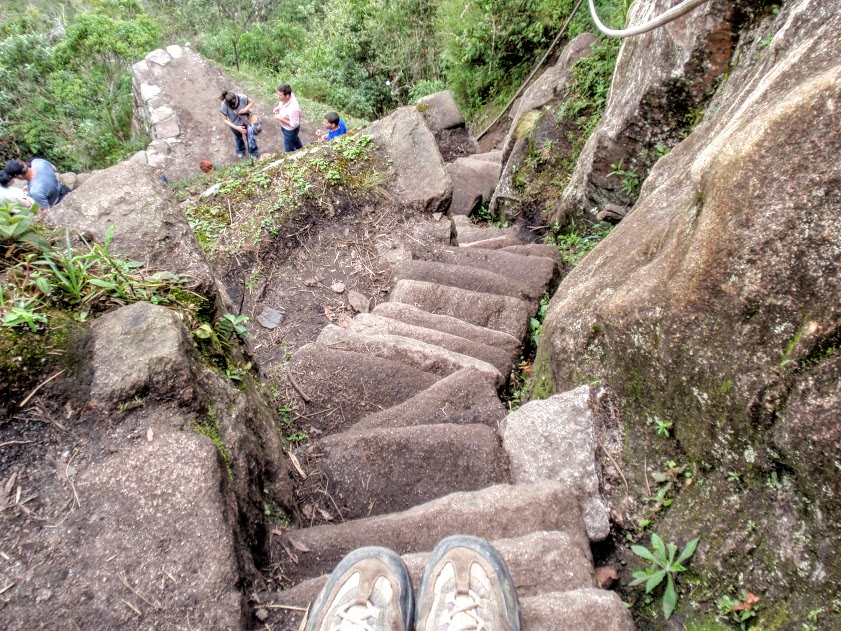 Couchés de bonne heure, pour se lever à 4 heures du matin !! Au programme de notre dernière journée, l’ascension des 1752 marches qui nous séparent du but ultime el famoso Machu Picchu !! L’ascension commence dans la nuit noire, les marches se suivent, longue procession de torches frontales, un rythme quelque peu lent et répétitif.