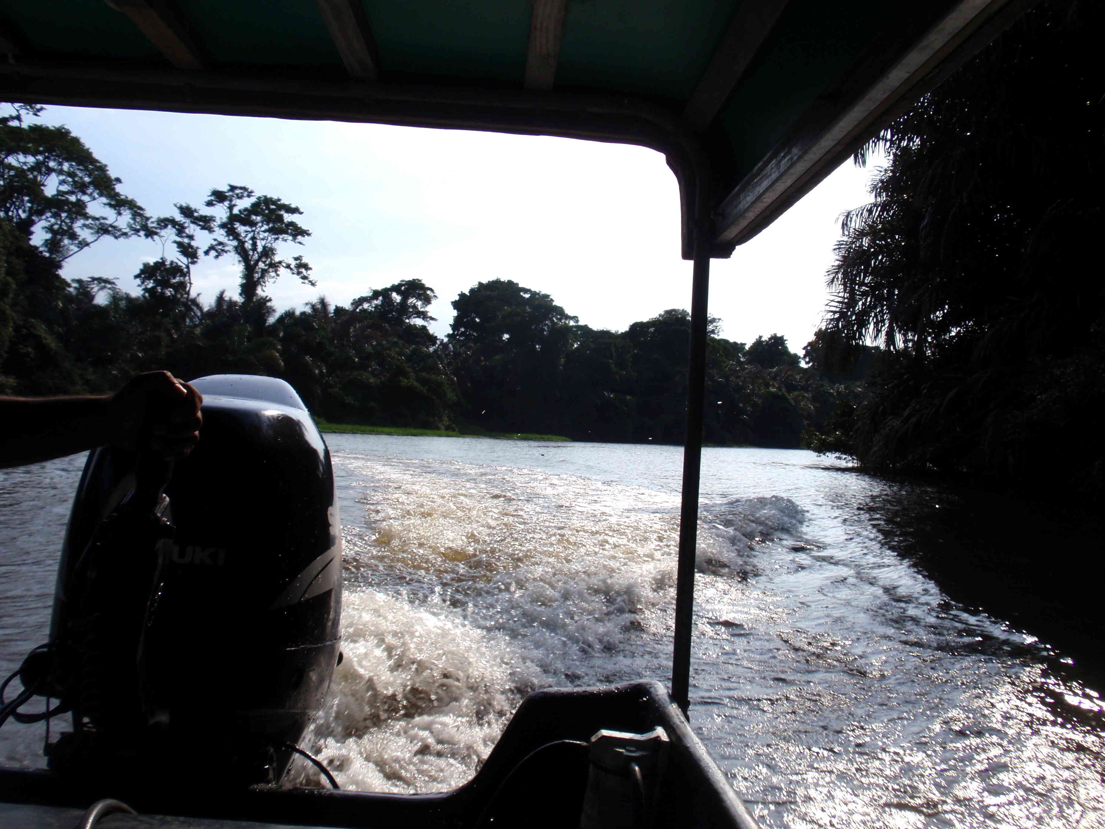 Le voyage se fait sur des petits bateaux qui transportent les touristes et les locaux au travers de canaux peu profonds et du fleuve Tortuguero, les rives sont bordées d’arbres immenses et de palmiers, les lézards et iguanes se dorent au soleil, les oiseaux s’envolent sous le bruit du moteur, nous voilà sur la route de pirates des Caraïbes.