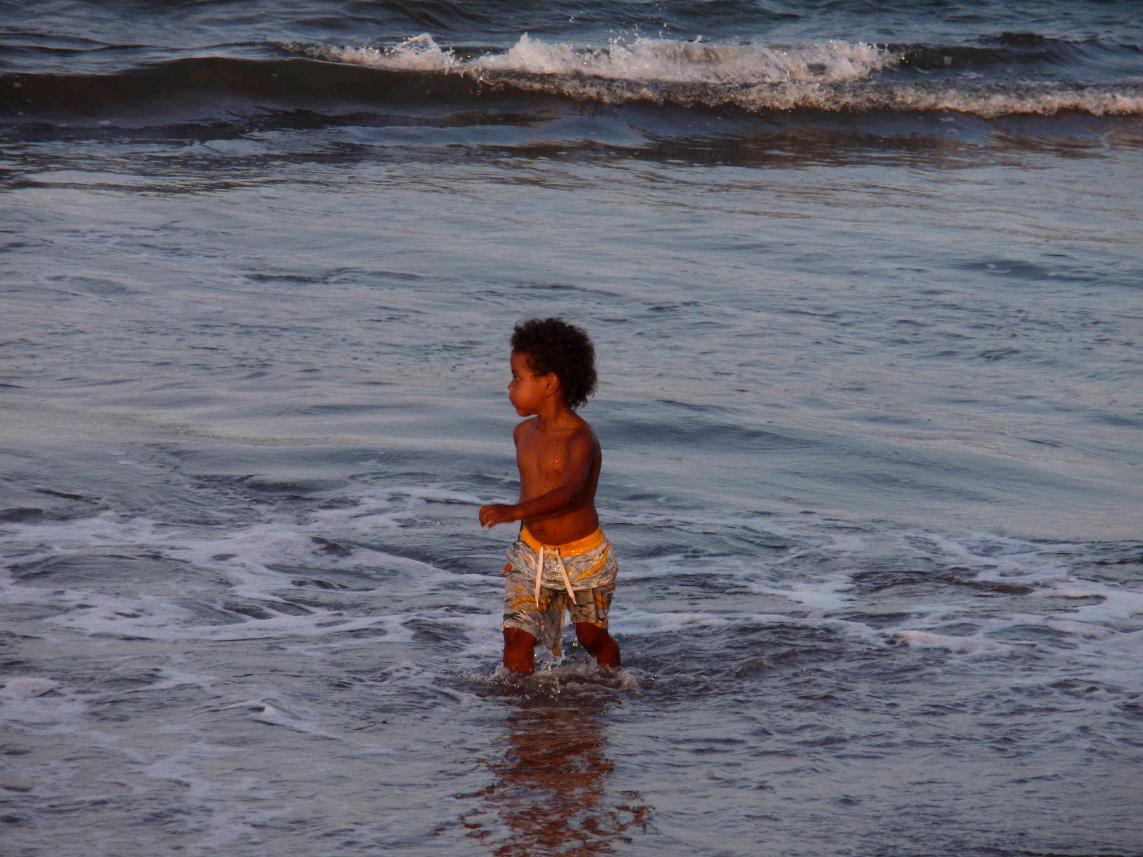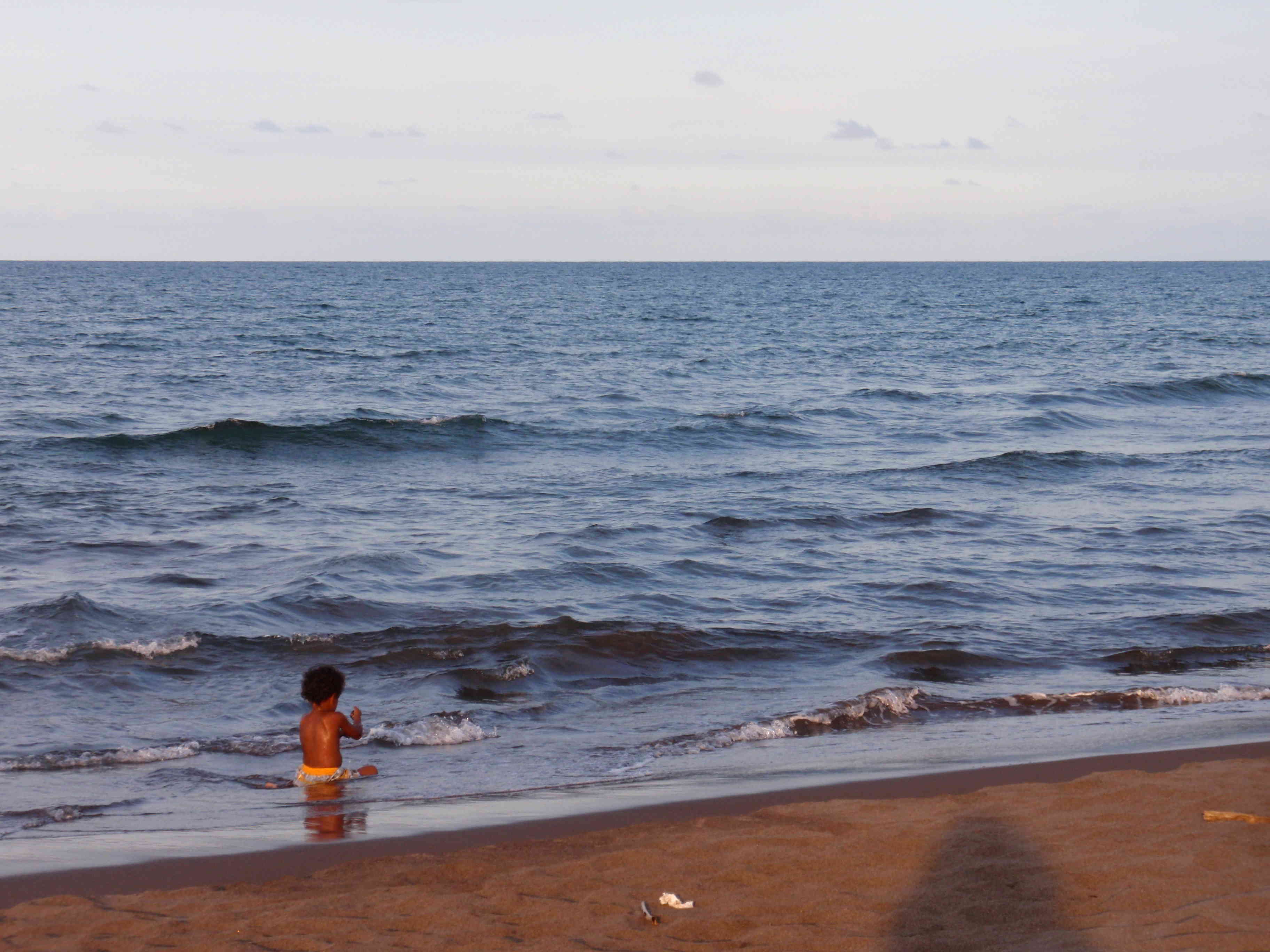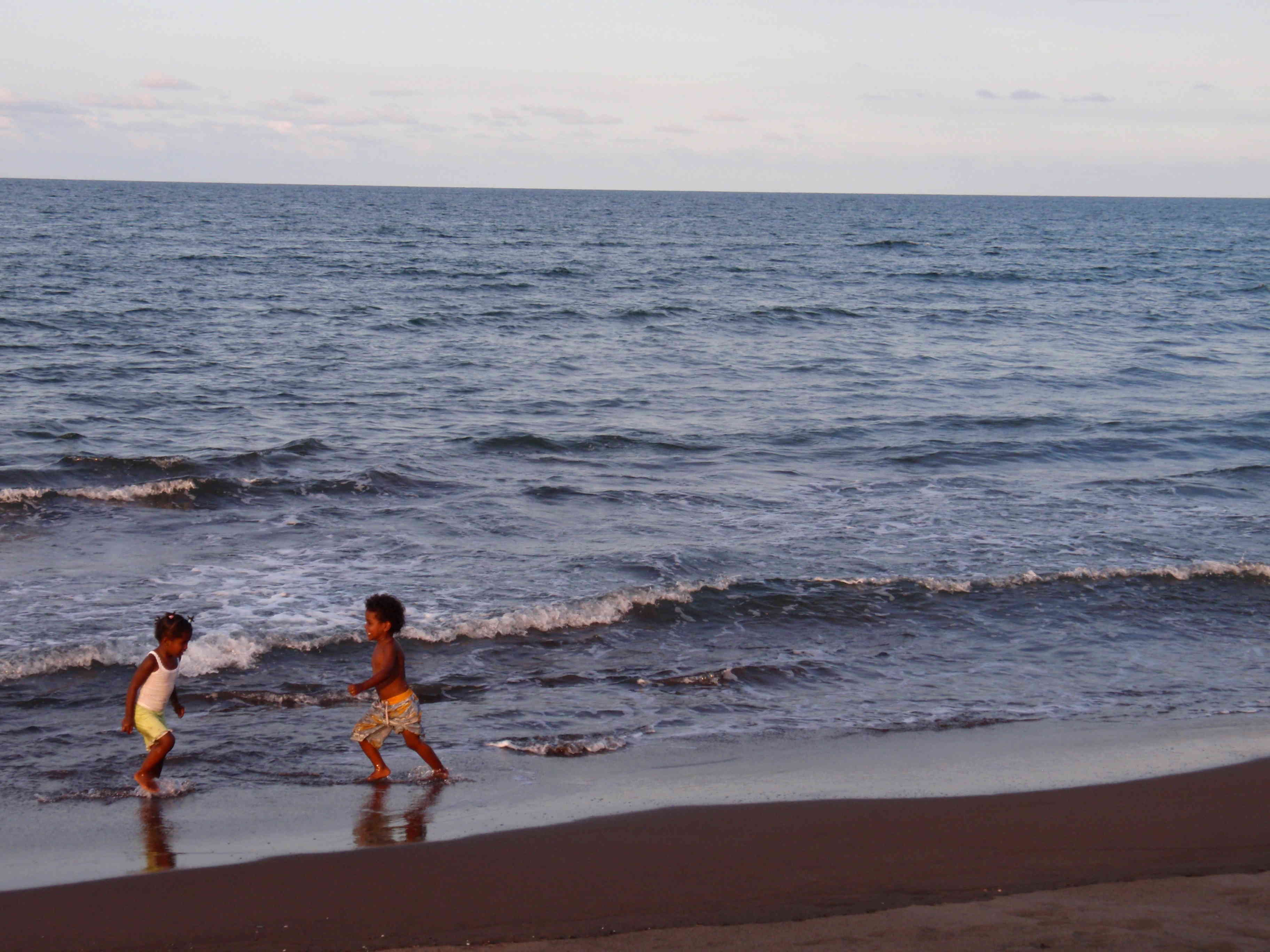 La plage qui donne sur l’Atlantique, est une plage de sable noir, l’eau est très salée et peu rafraîchissante, mais la lumière du soleil couchant est splendide. Le sable nous brûle les pieds, on se jette à l’eau, ici il ne nous faut pas longtemps mais tout de même quel délice après les températures de l’après-midi. Le soir, petit restaurant, avec un casado qui est le plat costaricain le plus courant : riz (arroz), haricots rouges (frijoles) et légumes (verduras), toujours délicieux mais encore meilleur avec un jus de mangue frais.