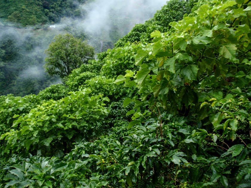 Au début du XXème siècle, la région était essentiellement forestière. Peu à peu, l’agriculture se développant, les forêts ont laissé place aux pâturages pour le bétail. L’agriculture était encore très diversifiée avec du maïs, des bananes plantains, des bananes, et des haricots. Le café a fait son apparition vers 1925 mais de façon encore extensive. Jusque dans les années 1950 où celui s’est imposé comme la culture locale majeure. La déforestation s’est accentuée dans les années 1980, pour former le paysage actuel avec ses champs de café couvrant les montagnes parsemées de petits bosquets. Depuis le début du siècle, la sensibilisation aux problèmes environnementaux, a contribué à l’implantation d’arbres d’ombrage. Les systèmes agroforestiers ont ainsi vu le jour, ils sont relativement homogènes et le café est cultivé sous couvert arboré avec principalement de l’érythrine (Erythrina poeppiegiana) et des musacées comme le plantain ou le bananier (Musa spp.).