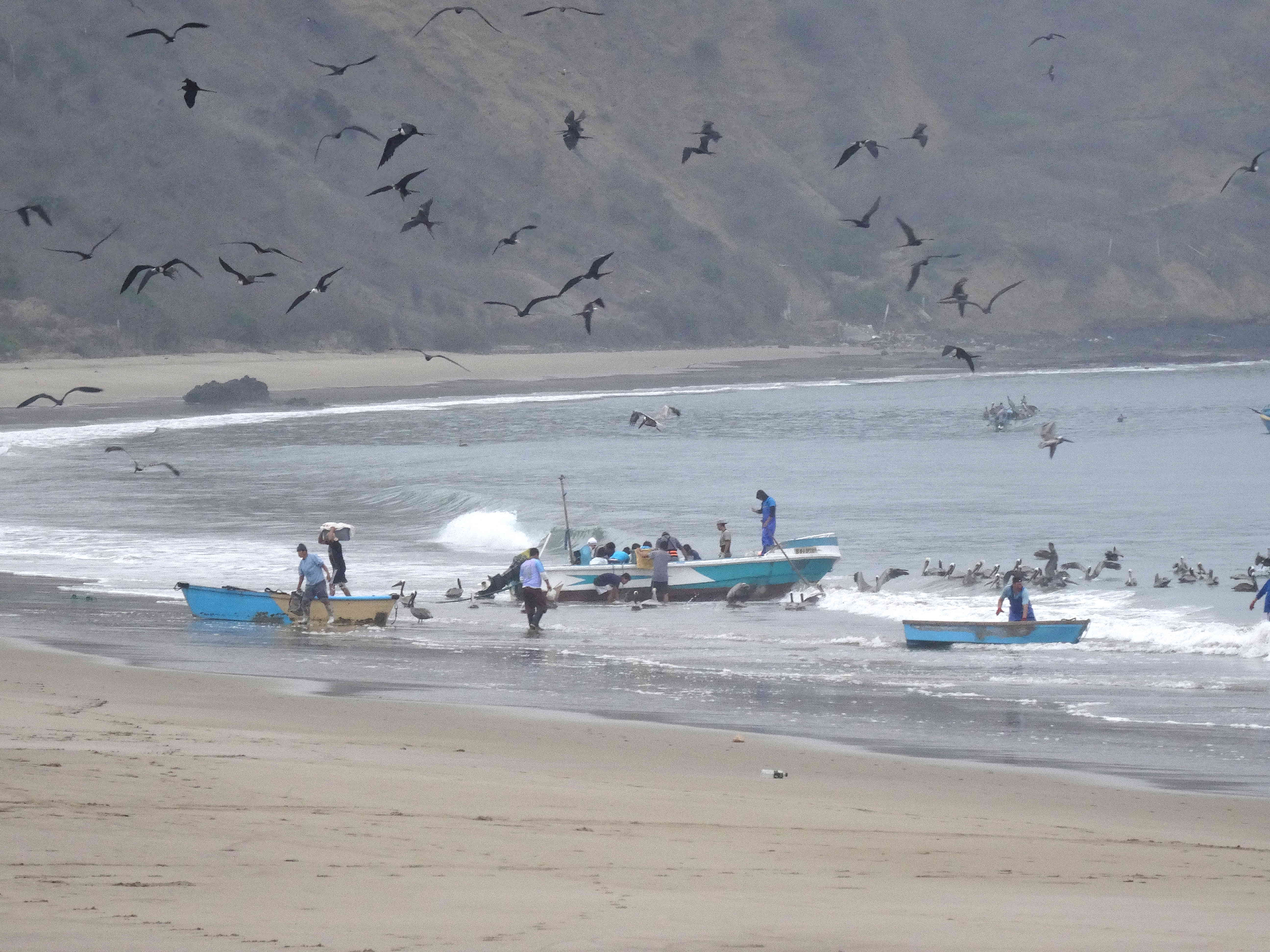 Salango, sur la côte équatorienne à quelques kilomètres au sud de la ville plus connue de Puerto Lopez. Alors non ce n’est pas un haut lieu touristique mais c’est un authentique village de pêcheurs, parfois l’usine à farine de poissons vous répandra sa forte odeur de poissons pour vous mettre dans le bain.